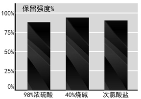 - POE®·夢絲®聚烯烴彈性纖維在濃度爲98%的(de)濃硫酸試劑中試驗,POE®·夢絲®聚烯烴彈性纖維沒有斷裂而且彈性沒有明(míng)顯下(xià)降,損傷率在15% - 20%之間。